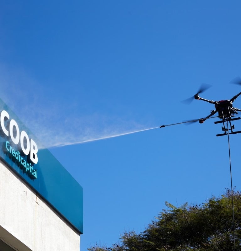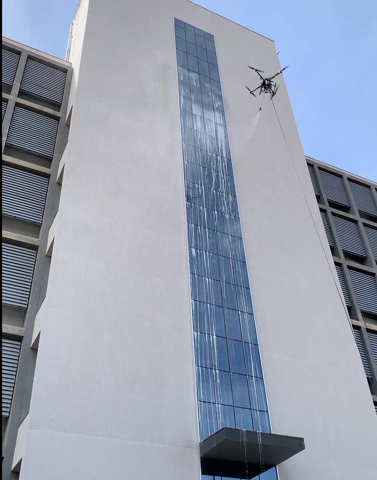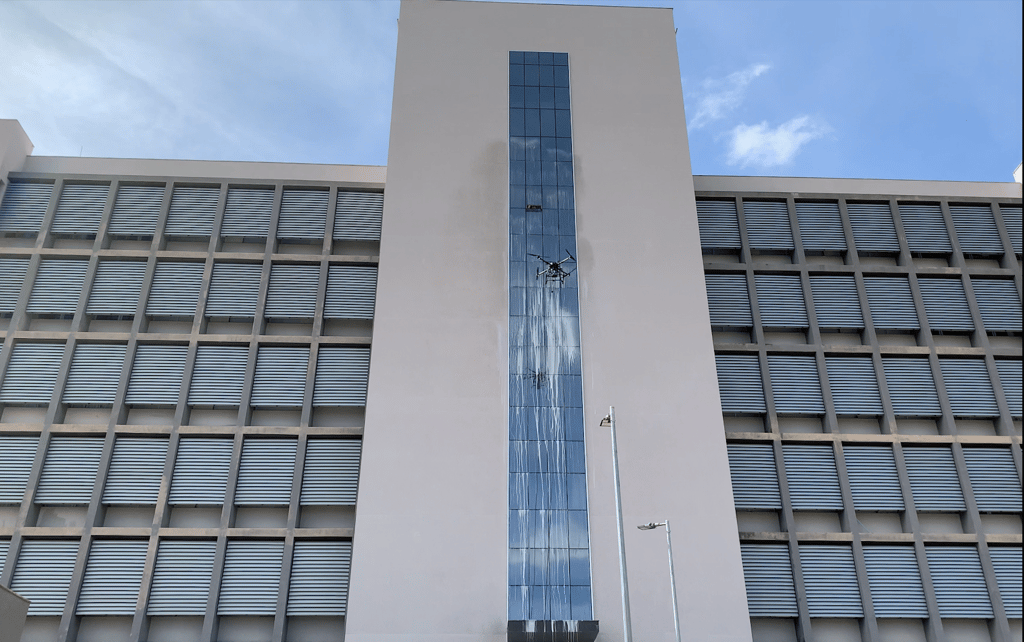 Este tipo de solução está sendo implementado comercialmente em todo o mundo para limpeza de janelas e fachadas e atualmente está em desenvolvimento para evoluir as soluções para pintura com drones nos próximos meses.
