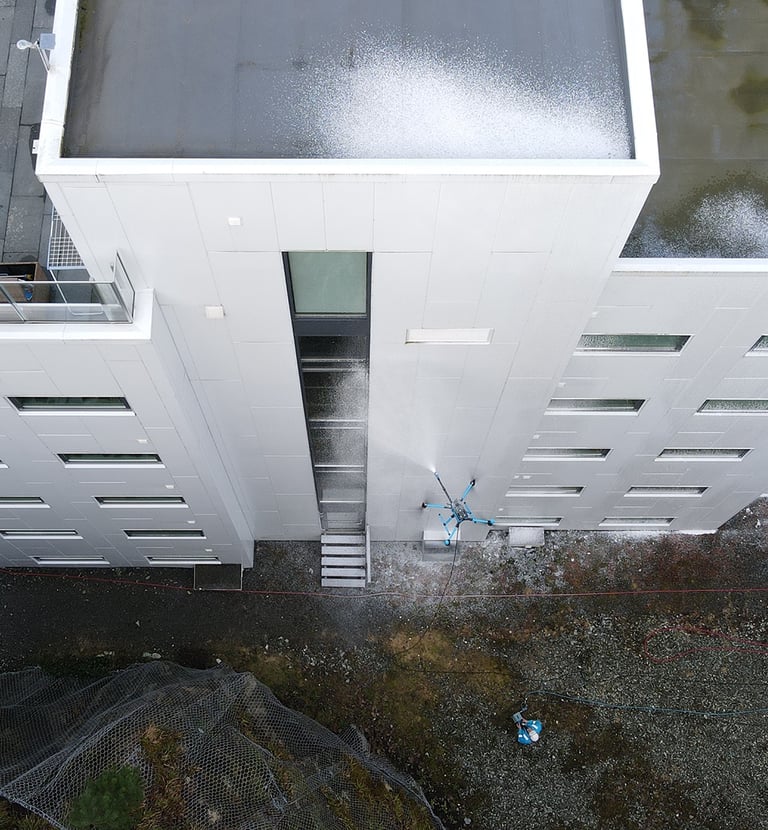 Muitos edifícios de vários andares criam desafios e tornam-se exigentes para muitos profissionais de limpeza, que devem aderir a protocolos de segurança rigorosos, tornando tais serviços complexos. As fachadas vêm em todos os tipos de materiais diferentes, por exemplo, vidro, pedra, cobre, folhas compostas de alumínio, aço inoxidável, que requerem diferentes métodos e requisitos para serem limpas.